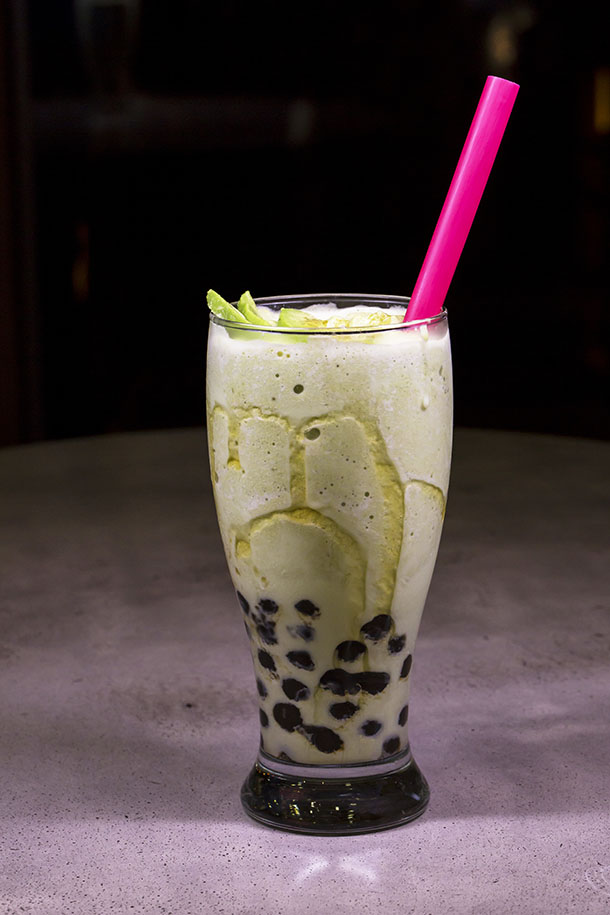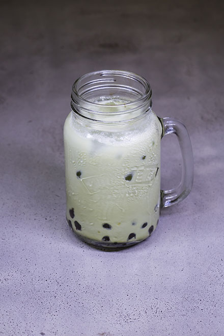 A COMBINATION OF MOCHA AND MATCHA TEA BLENDED WITH ICE AND FRESH MILK.